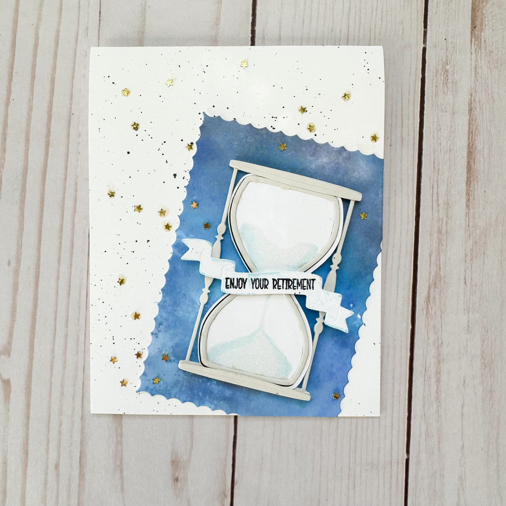 This unique hourglass stamp set is a fun way to celebrate occasions that endure throughout time!