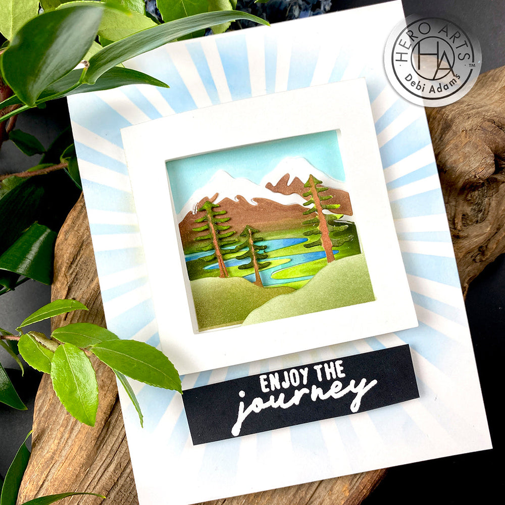 Part of the Hero Arts Looking Glass Collection, this die set creates a picturesque 3-dimensional mountain view scene--complete with a river and trees!