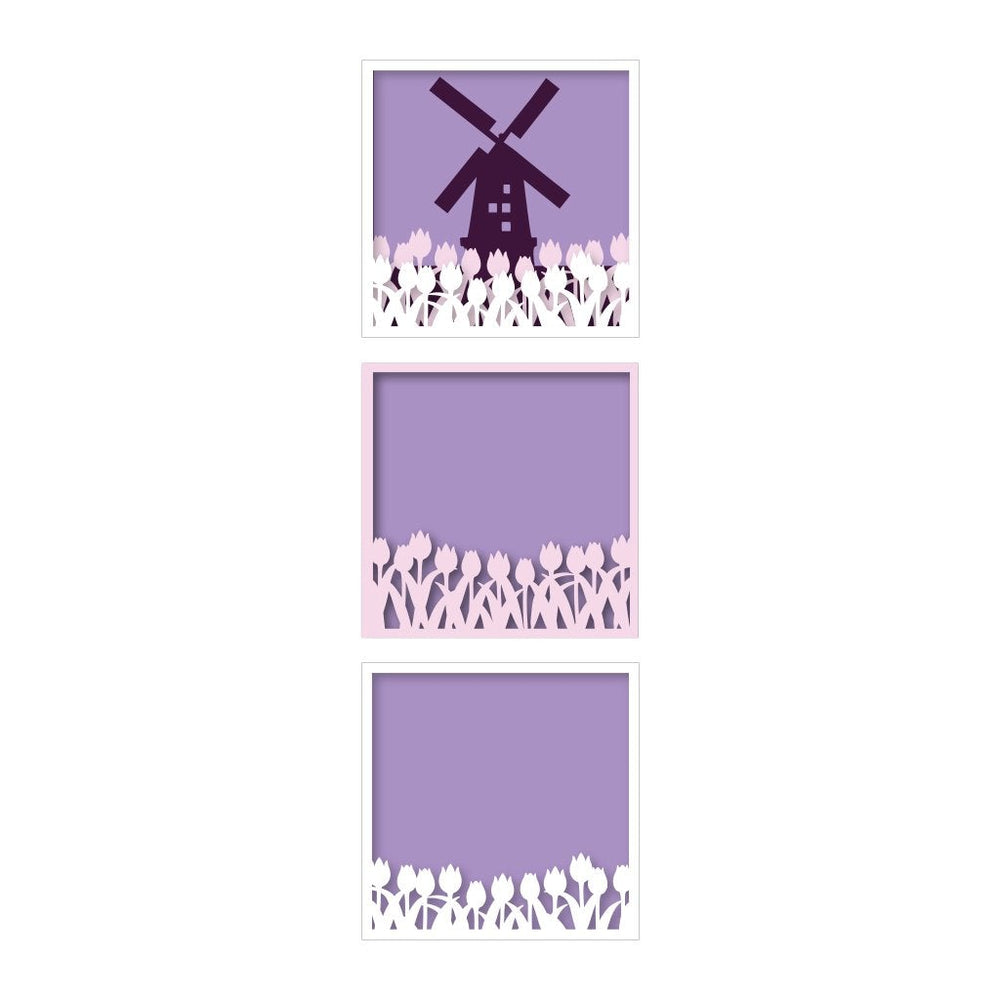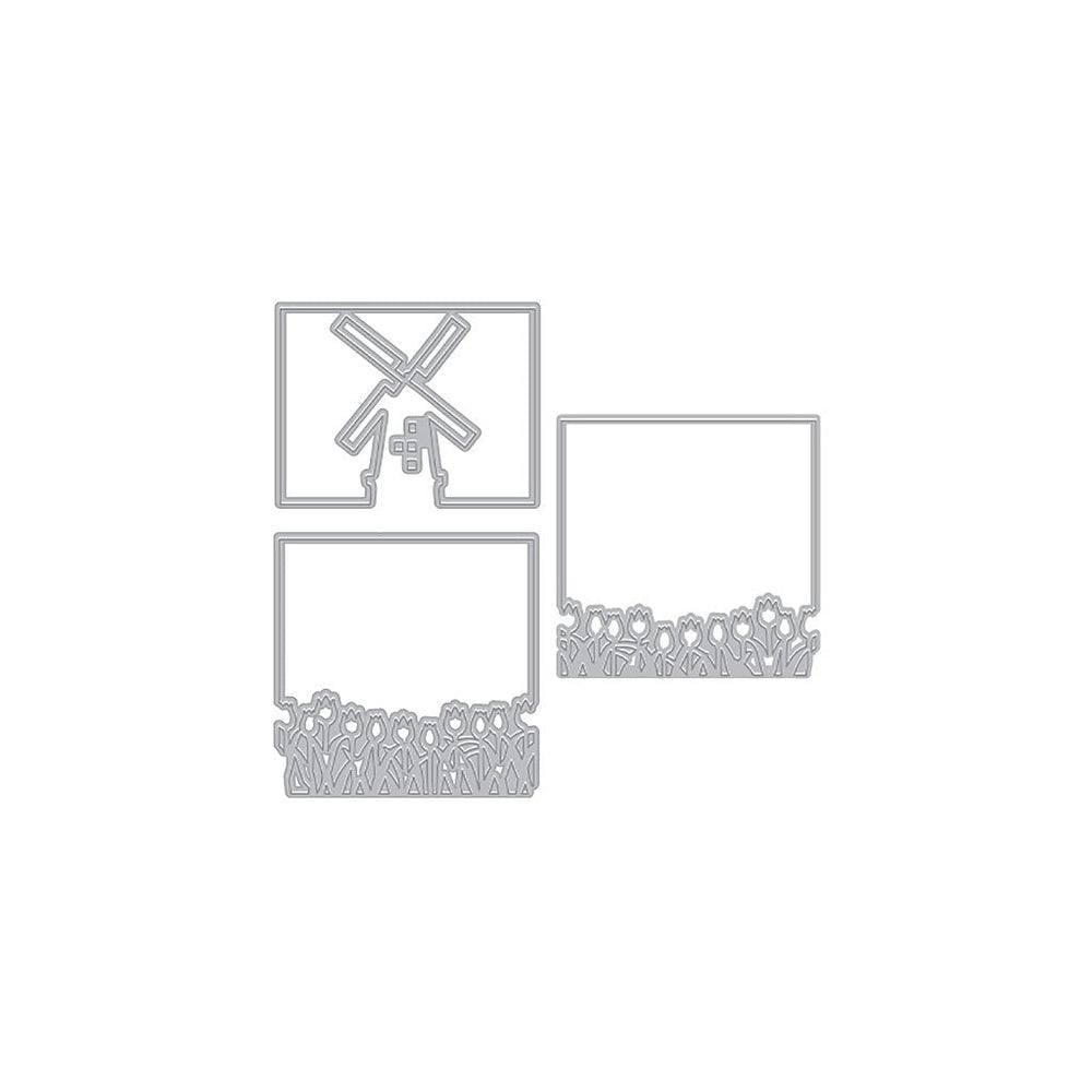 Part of the Hero Arts Looking Glass Collection, this die set creates a pretty 3-dimensional windmill and rows of tulips! It's a beautiful scene that can be used for any occasion.