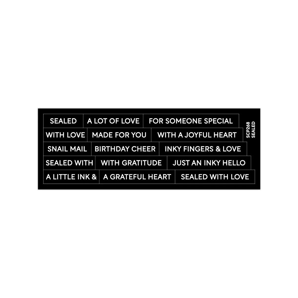 These sentiment strips are great to have handy, to add to larger word dies/sentiments on a card. These can be combined to create a lovely message, and are designed to accompany any mail/note related scenes. This coordinates well with the Sealed Collection,. Pick up other fun envelope/mail themed items, like stamps and other stencils.